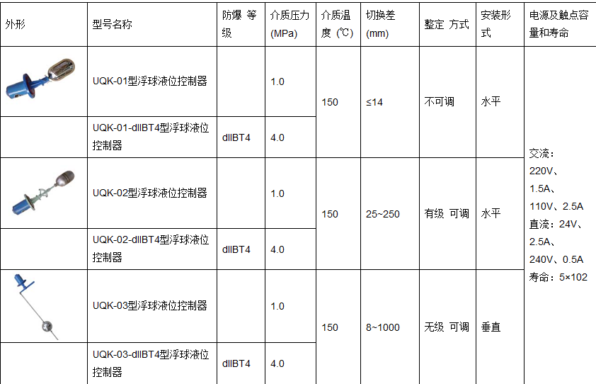 UQK型浮球液位控制器适用于工业生产过程中敞开或承压容器内液位的控制,当液位到达高、低极限时,继电器触头可作为信号报警装置或电动泵等线路中的开关。进入 http://www.zcfuqiu.com 公司网站可了解更多详情、产品