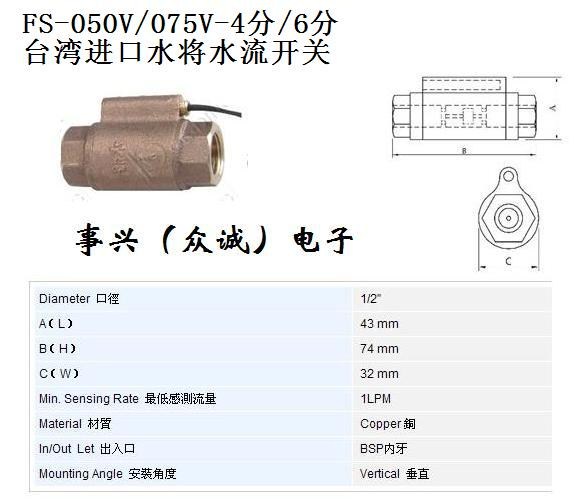 进口黄铜水流开关 ZC-FS-050V/075V